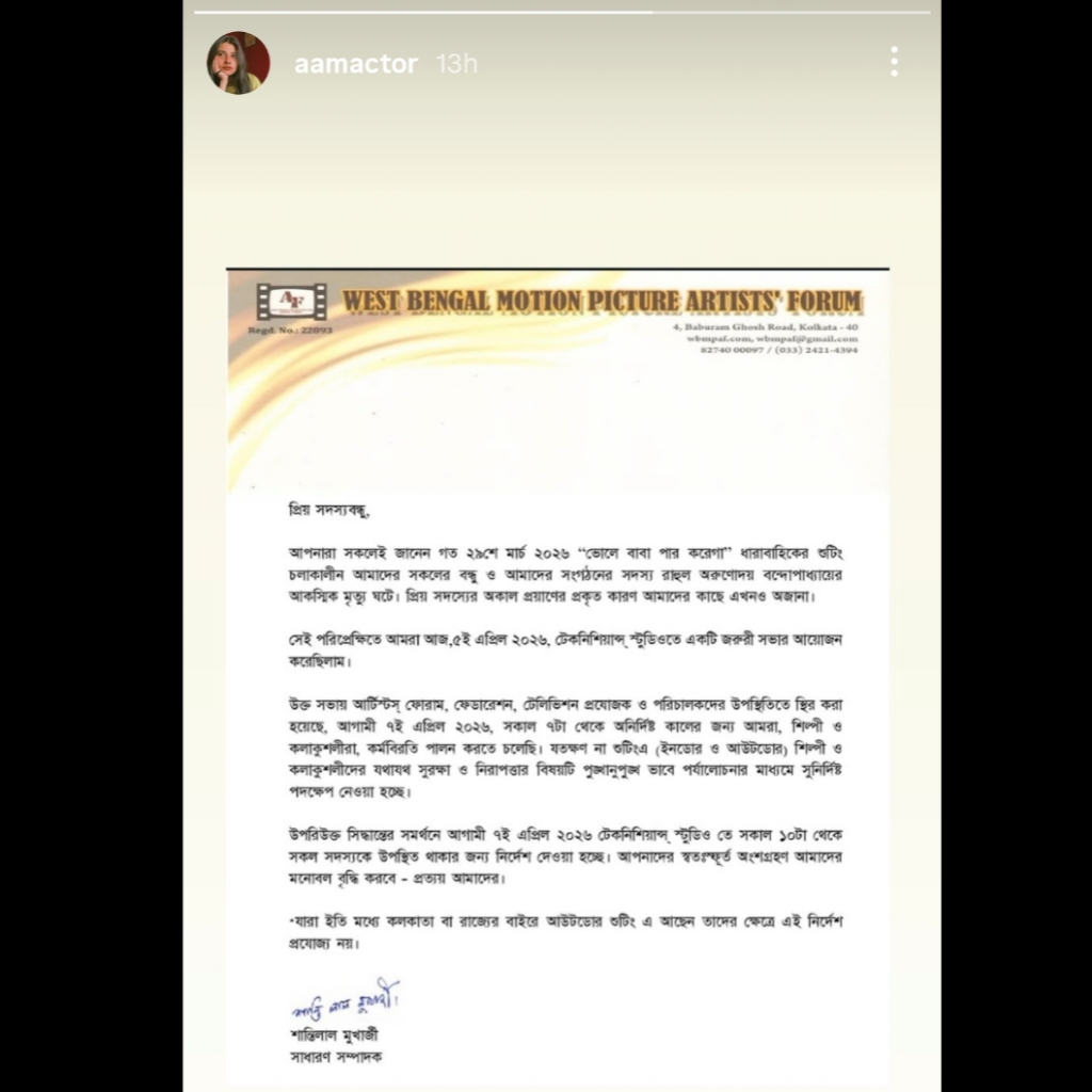 তবে রবিবার শিল্পী সংগঠনের বৈঠকের পর ঘোষিত কর্মবিরতির ডাক যখন ইন্ডাস্ট্রির বহু তারকা সমর্থন করেন, তখন সেই একই বার্তা নিজের সোশ্যাল মিডিয়ায় ভাগ করে নেন শ্বেতাও। ফলে অনেকেরই প্রশ্ন, প্রযোজনা সংস্থার বিরুদ্ধে ওঠা অভিযোগের প্রেক্ষিতে তিনিও কি অবস্থান স্পষ্ট করলেন?