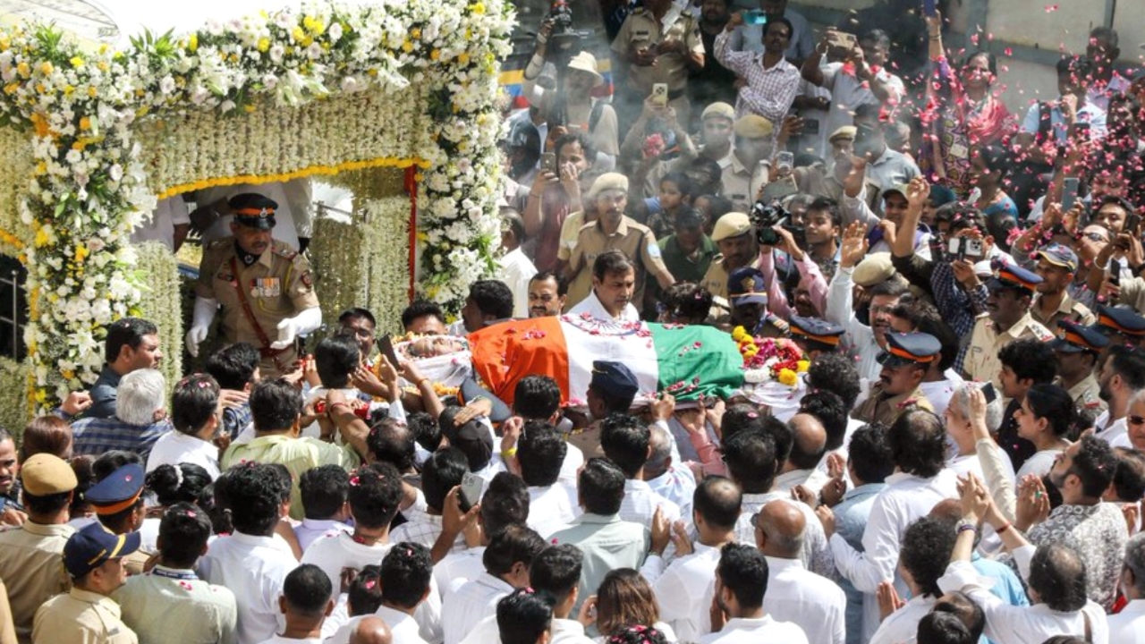 রাজ্য মর্যাদায় শ্রদ্ধা জানাতে উপস্থিত ছিলেন মহারাষ্ট্রের মুখ্যমন্ত্রী দেবেন্দ্র ফড়নবিশ (Devendra Fadnavis)। সকাল ১১টা থেকে দুপুর ২টো পর্যন্ত চলেছে শেষ দর্শন। এরপরই শুরু হয় শেষযাত্রা, যা ঘিরে ছিল নজিরবিহীন নিরাপত্তা।
